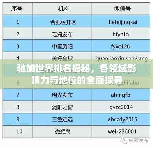 驰加世界排名揭秘,各领域影响力与地位的全面探寻